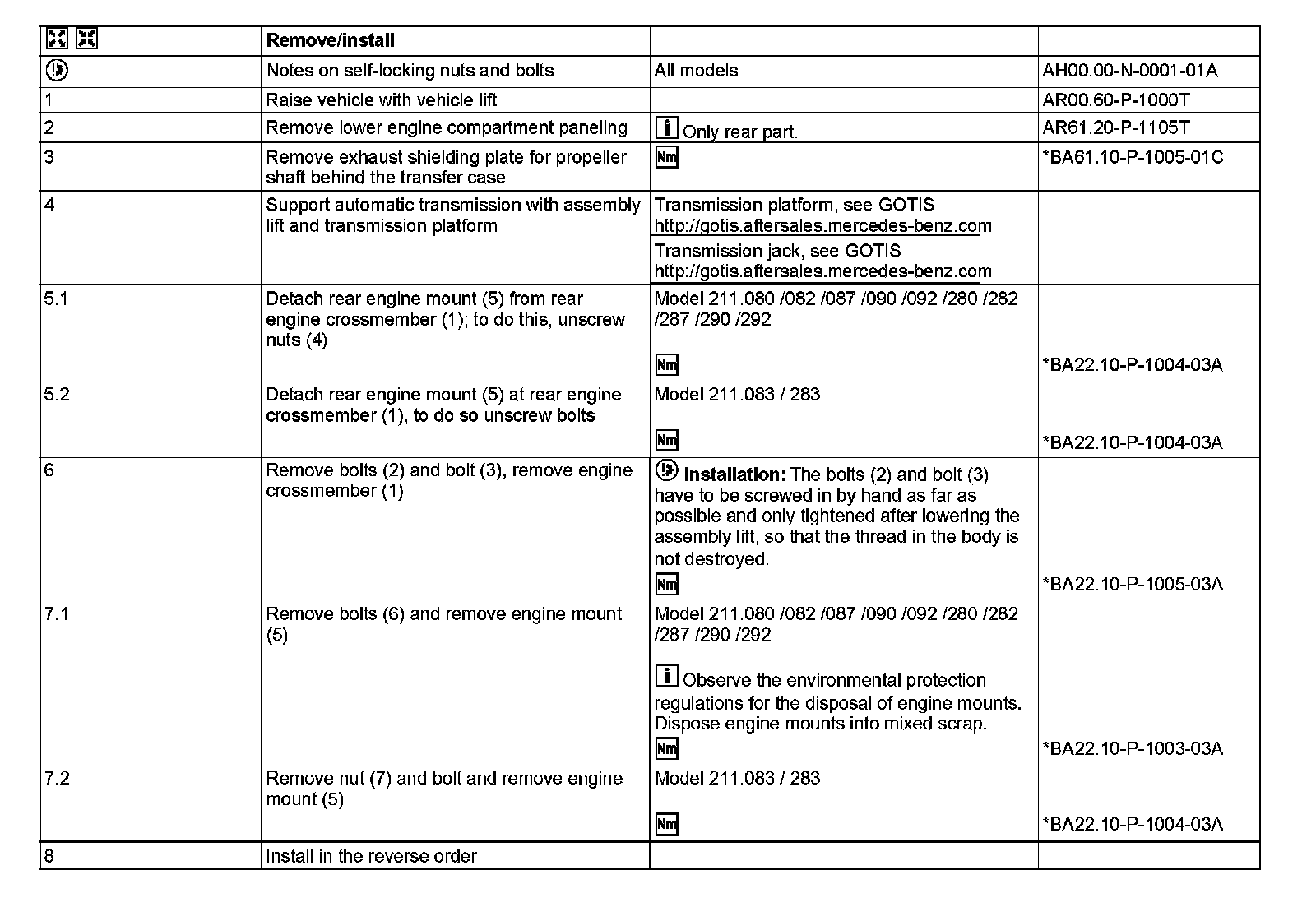 AR22.10-P-1160TW Remove/install rear engine mount