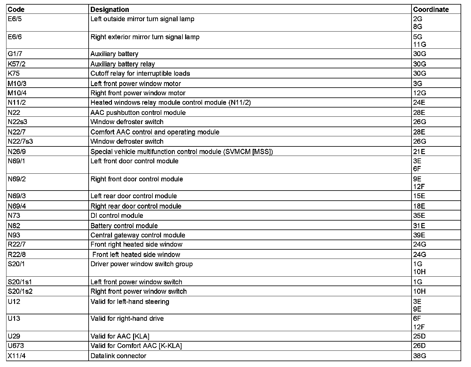 Component Description/Coordinates, E6/5 To X11/4: