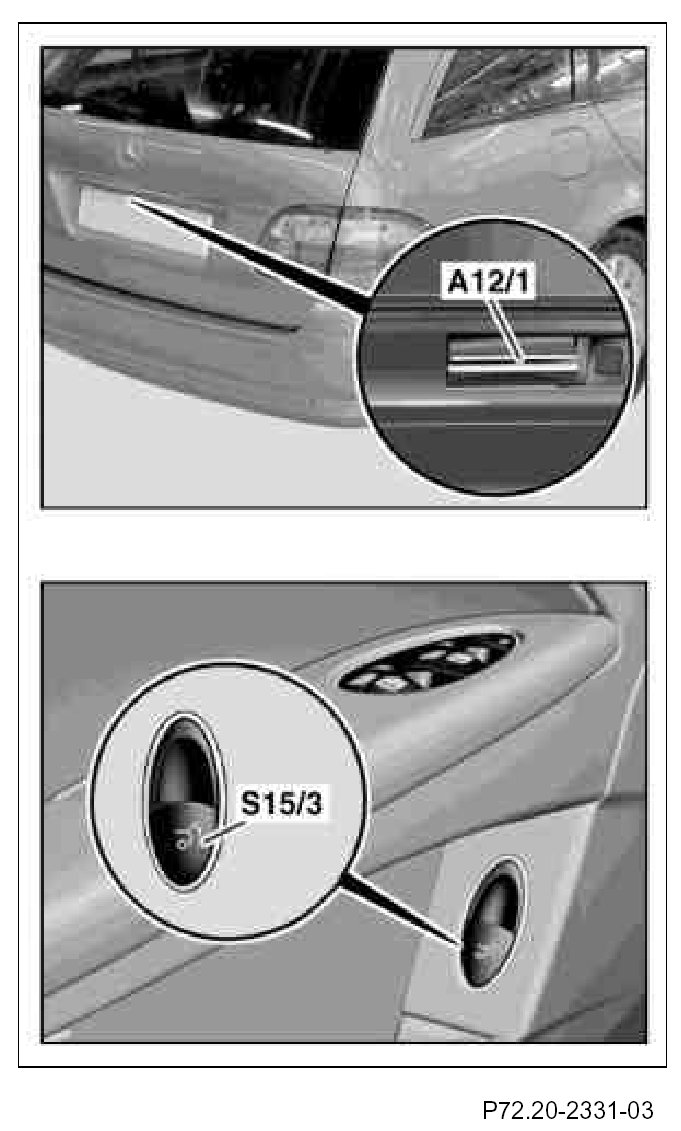 3. Pull driver-side trunk lid open/close switch (S15/3) in driver's door lining until rear-end door is moved up completely and switches off automatically.