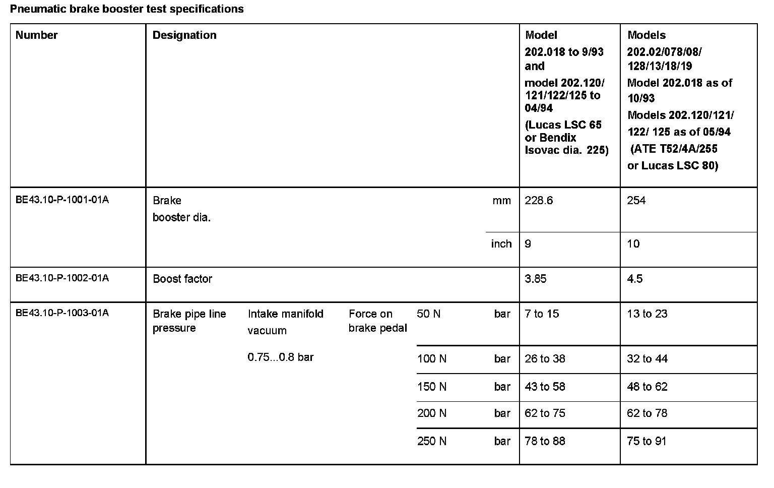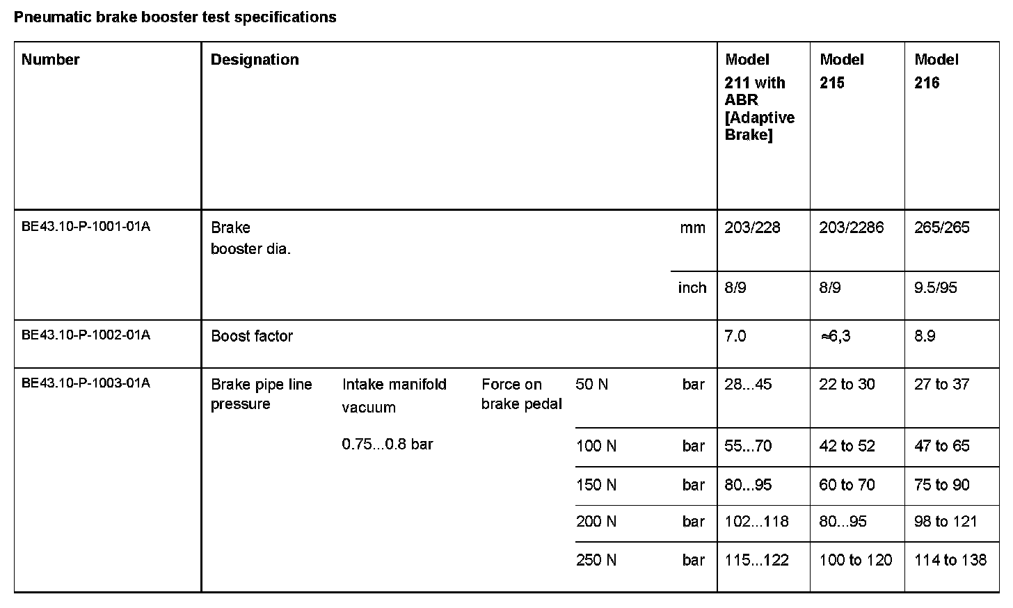 BE43.10-P-1000-01A Pneumatic brake booster test specificationsModification Notes: