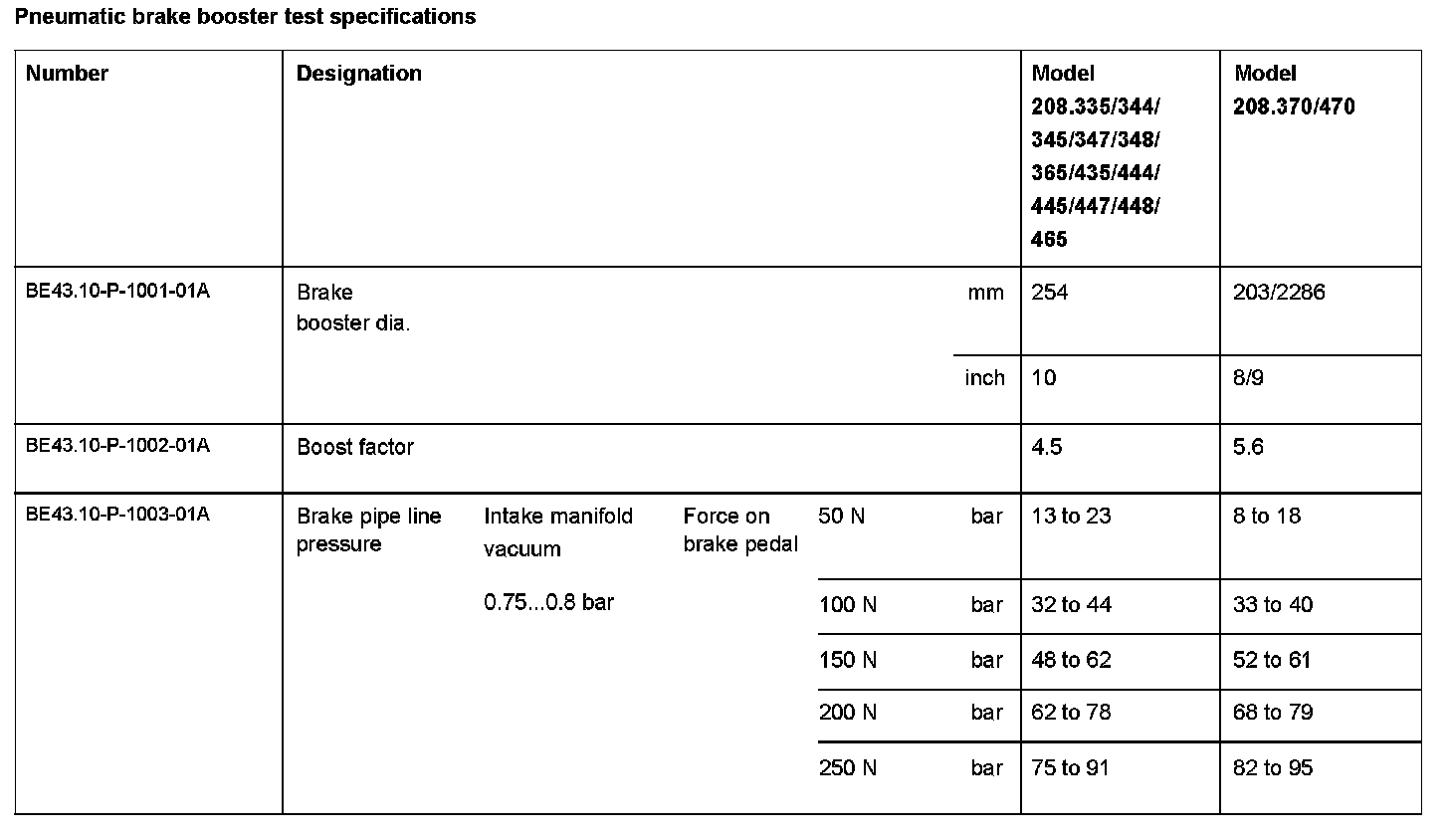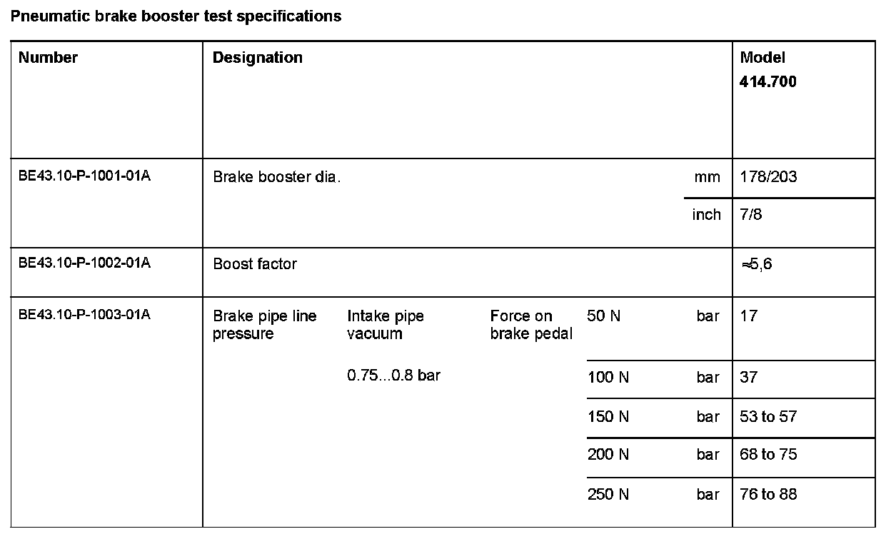 Pneumatic Brake Booster Test Specifications: