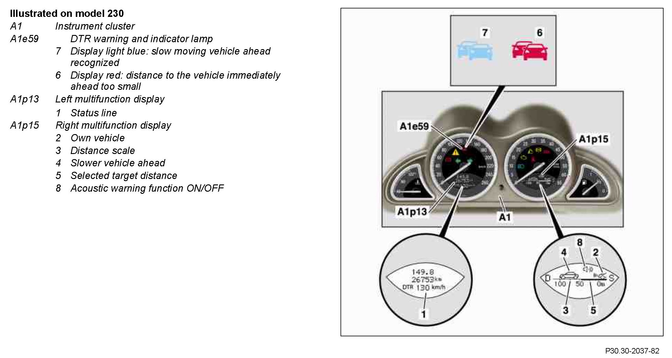 The Distronic (DTR) must maintain the selected speed (cruise control function) and also regulate the distance to the vehicle immediately ahead.