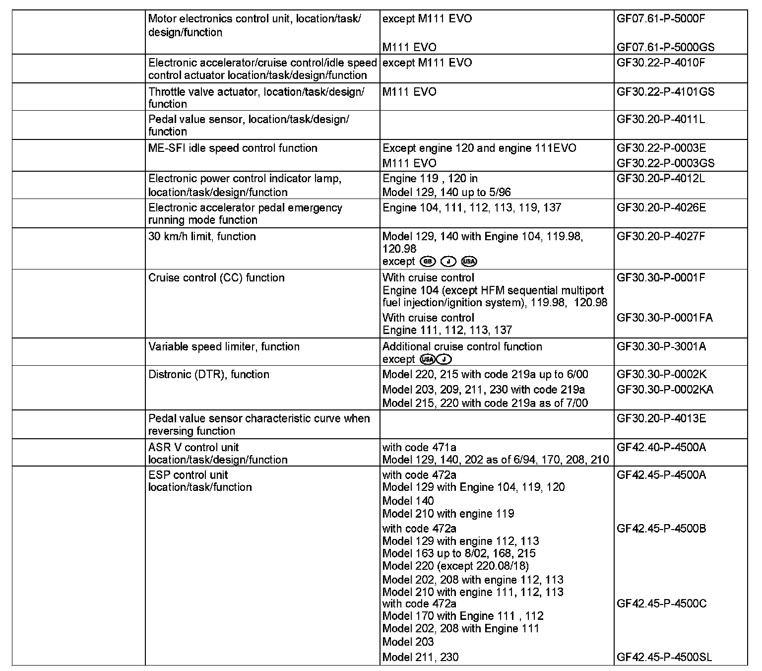 Adaptative accelerator pedal (model 203, 209, 211, 215, 220, 230): The engine control unit recognizes how the accelerator pedal is being actuated and switches between characteristic curves. Eighty percent of the engine load is released for a pedal travel of about 50 % for a sporty driver and about 40 % for a quiet driver. There is no further difference felt above a pedal travel of about 90 %.