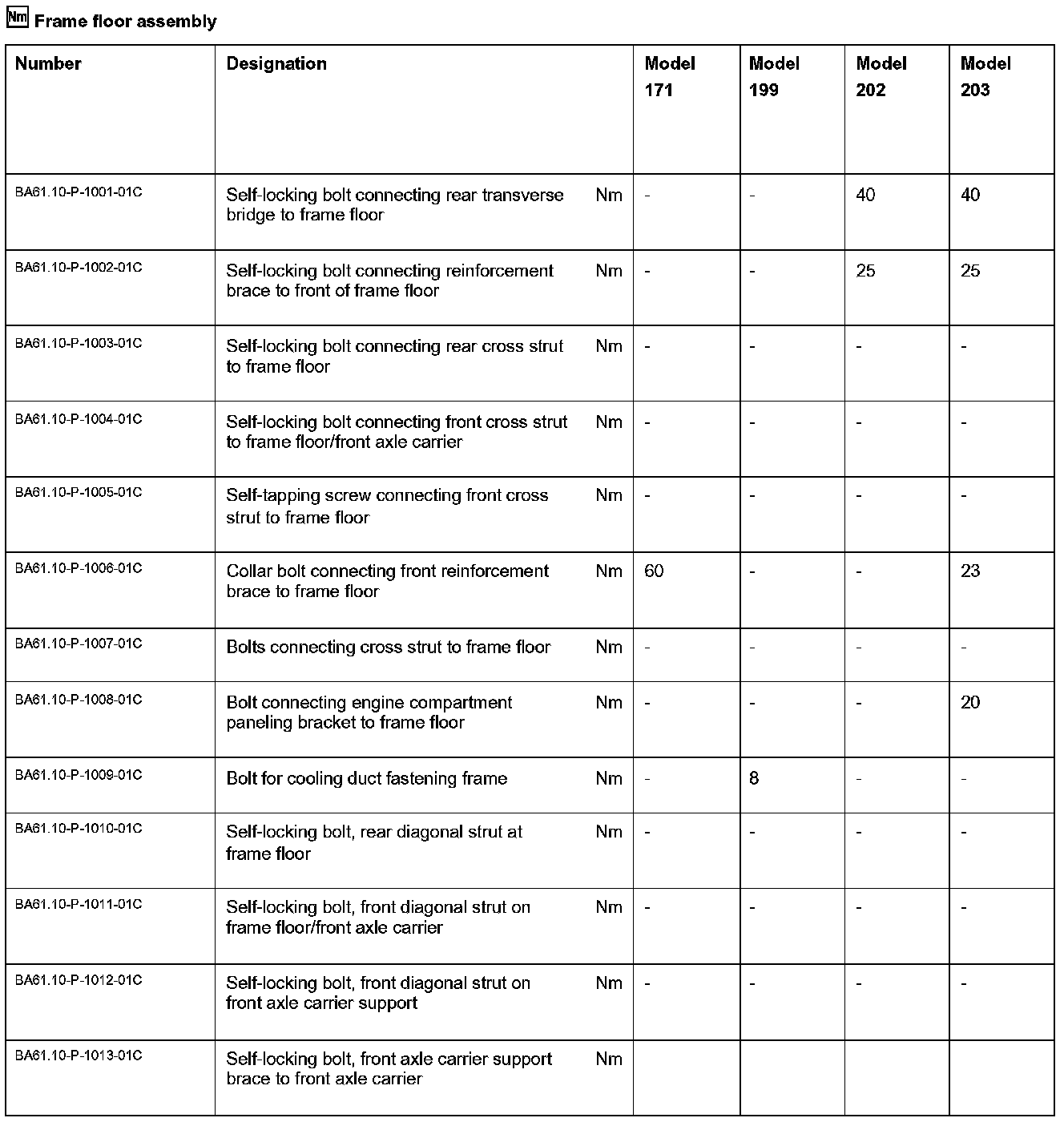 BA61.10-P-1000-01C Frame Floor