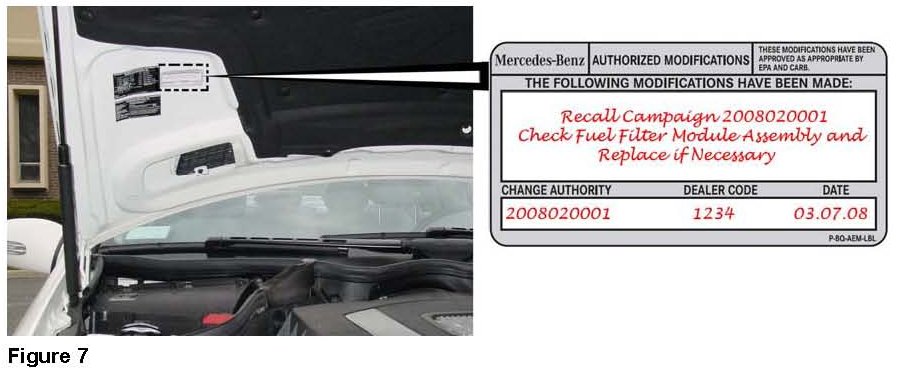 1. Fill out Repair Label and affix on underside of hood next to existing emissions labels (as shown in Figure 7).