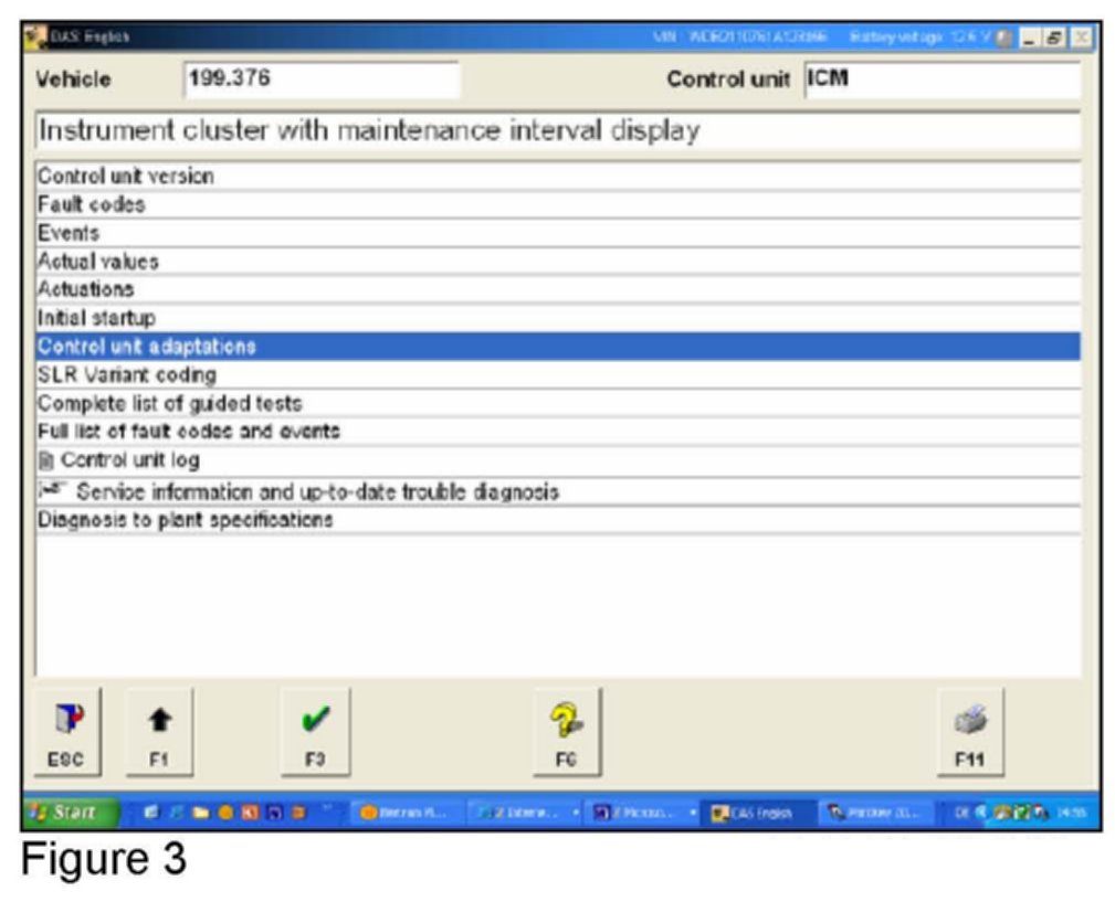 3. Select the Control unit adaptations menu and confirm with F3 (Figure 3).
