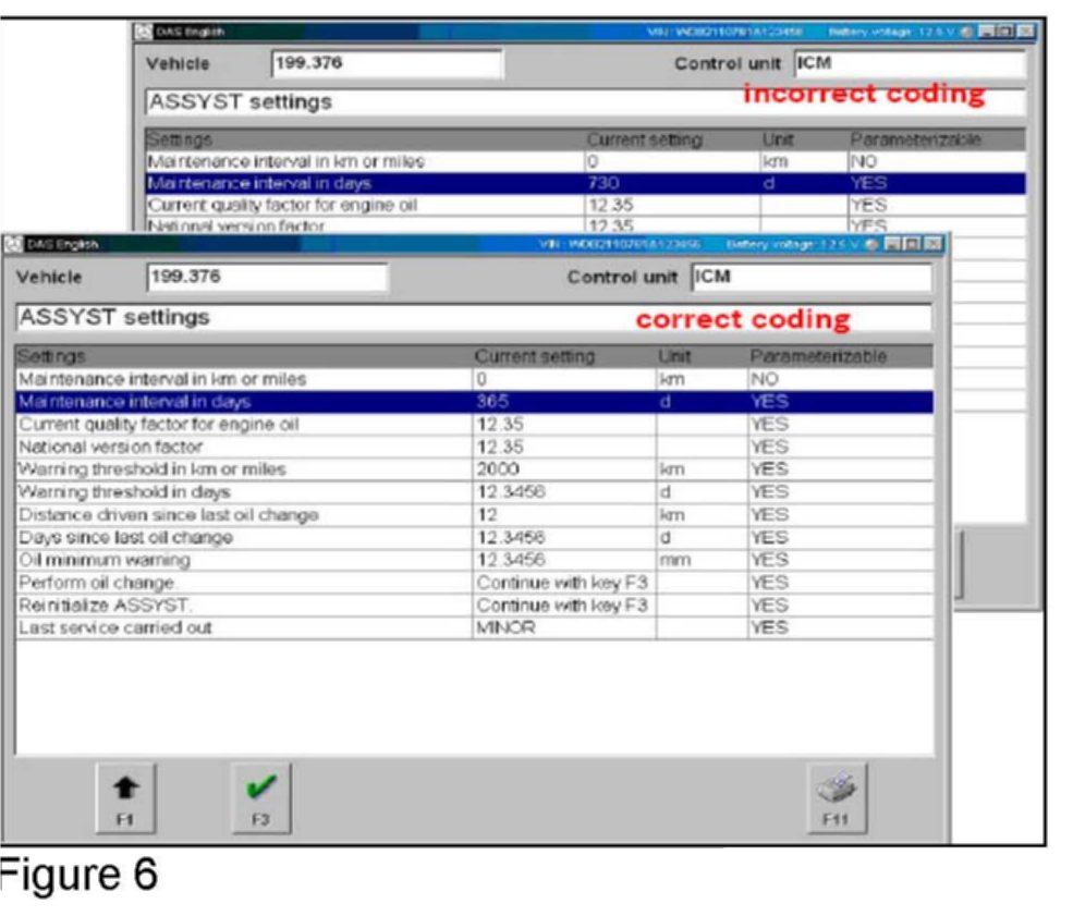 If you receive customer reports in the above model vehicles where the maintenance interval was mistakenly set to 24 months in the instrument cluster, check the setting with the Star Diagnosis System (SDS) and if necessary recode the maintenance interval.