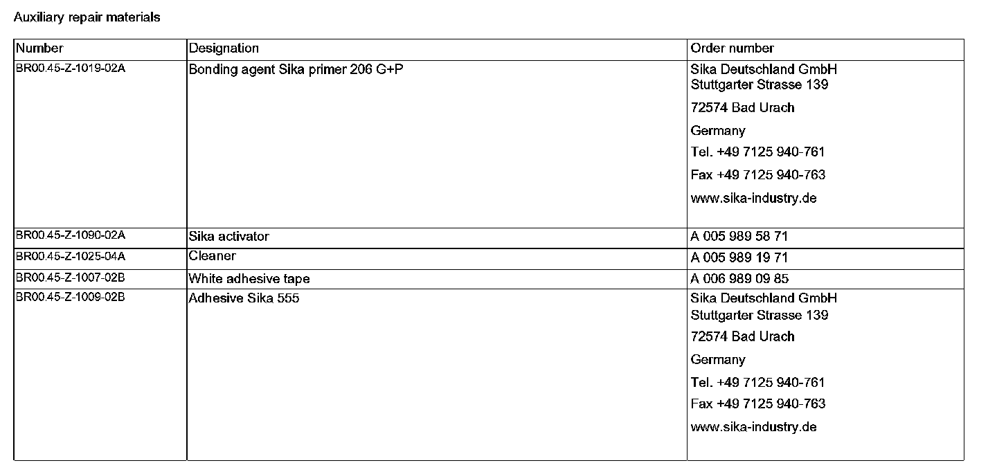 Auxiliary Repair Materials: