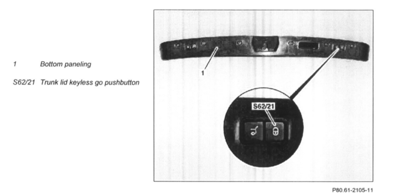 2 Unclip and remove trunk lid keyless go button (S62/21) from bottom paneling (1)
