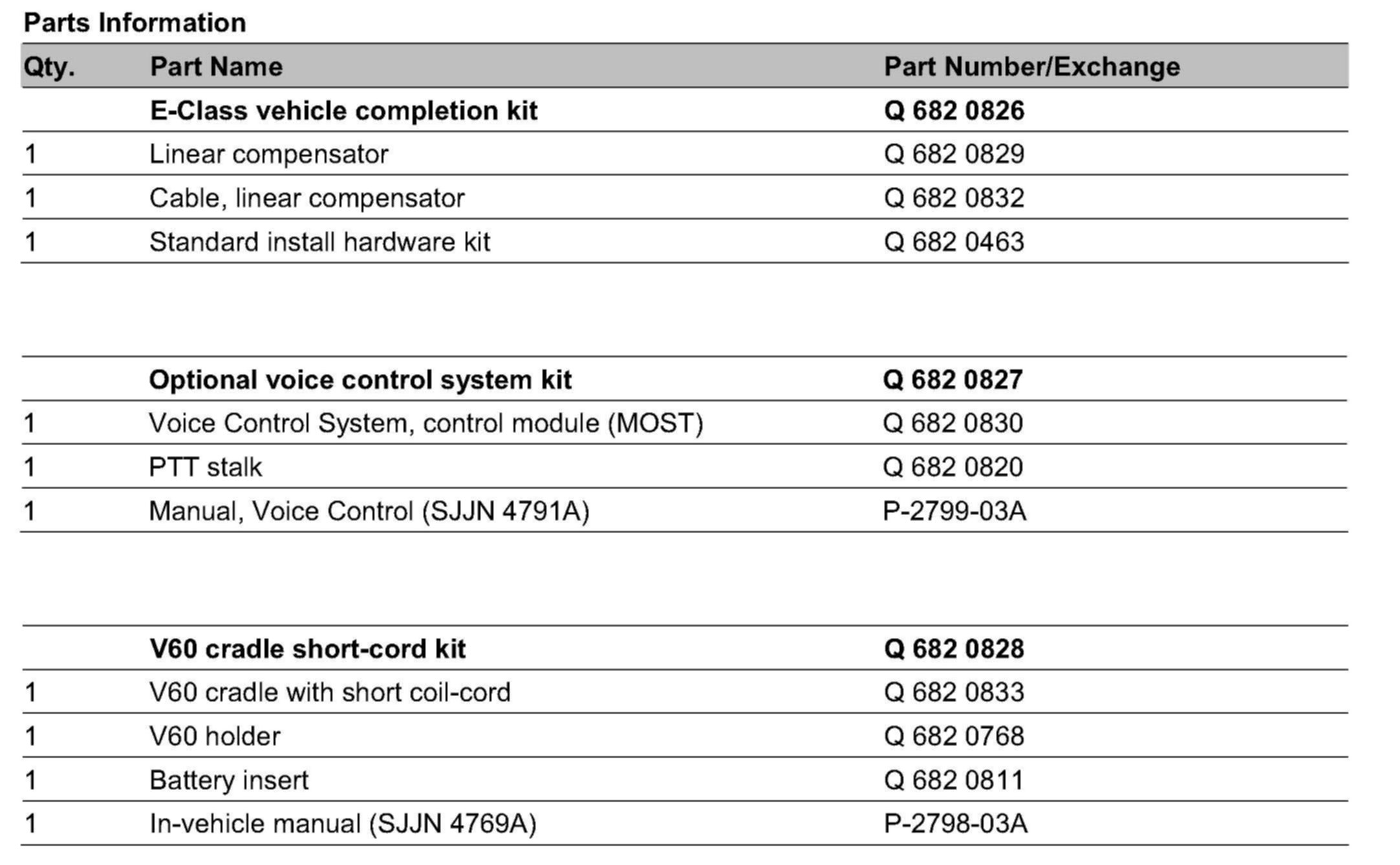Parts Information