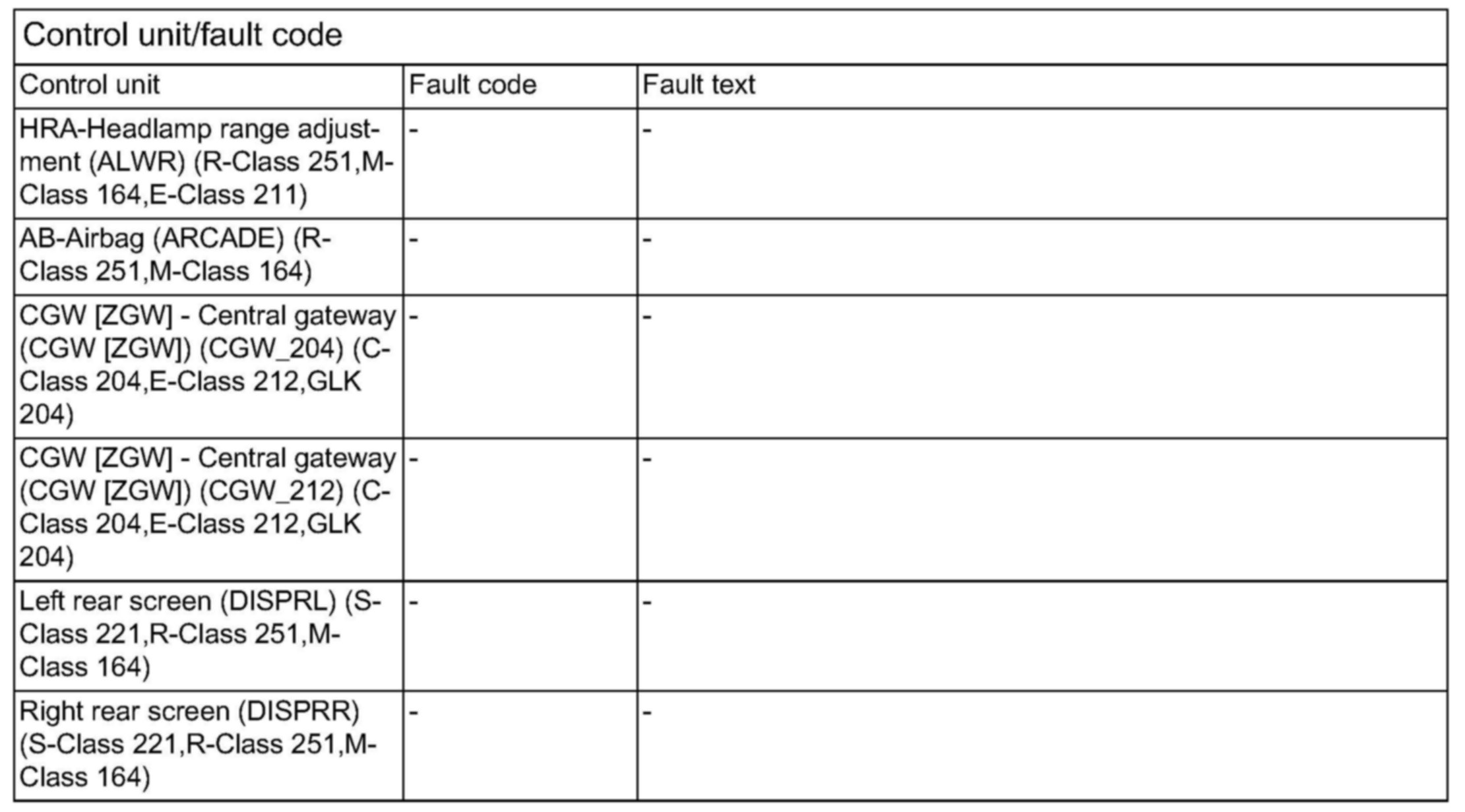 Control unit/fault code