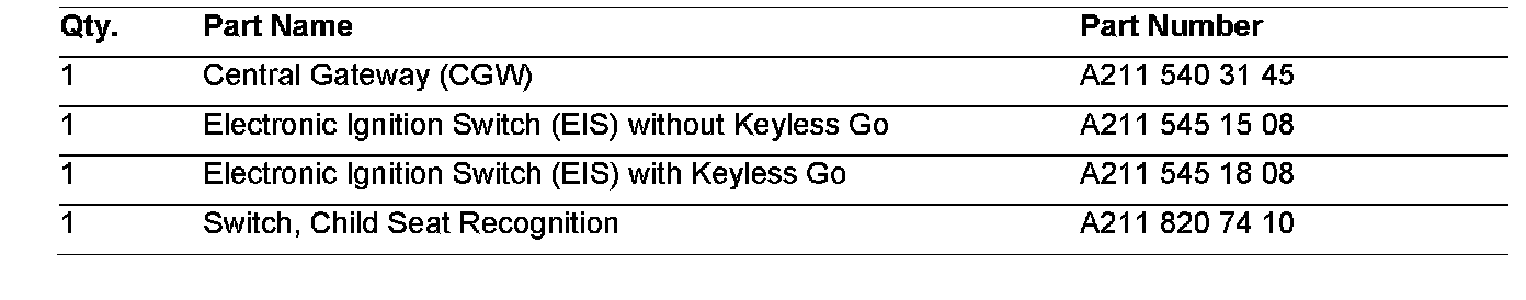 1. If the SRS MIL is illuminated and any of the following DTCs (9070, 9071, 9072, 9078, 9079, 906C/D/E/F, 907A/B) are found, replace only the CGW with the part number listed below.