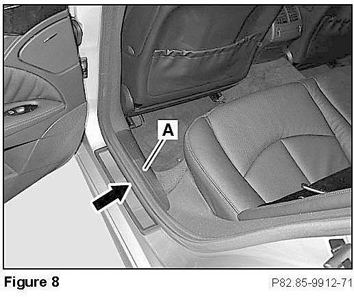 ^ Remove rear entrance paneling (A, Figure 8).