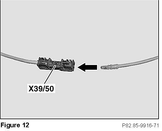 ^ Insert fiber optic cable connector lead into fiber optic connector (X39/50, Figure 12) in direction of arrow (Figure 12).
