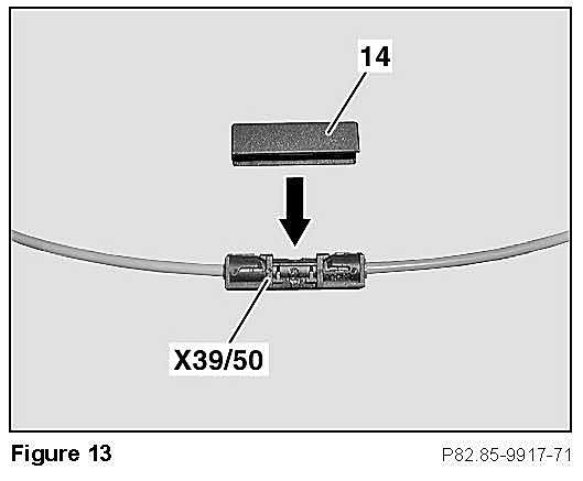 ^ Remove (unclip) cover (14, Figure 10) from MOST fiber optic cable connector (X39/50).