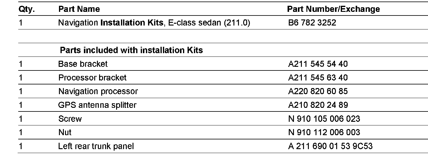2. Unpack and compare the installation kit contents against the Parts Information list.