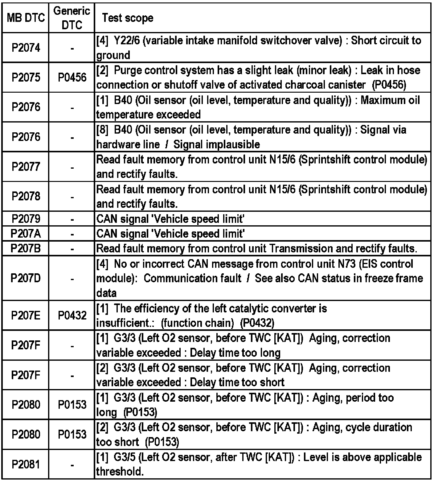 MB DTC P2081 - P2088: