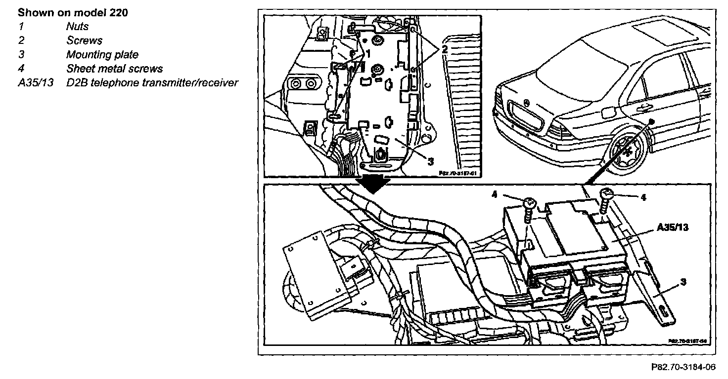 6 Release connectors on D2B telephone transmitter/receiver (A35/13) and disconnect