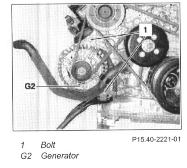 9 Unscrew bolts (1) and place generator (G2) to the side