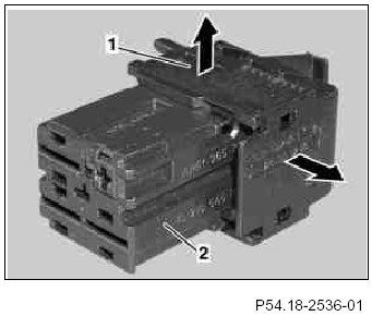 4 A slight tug on the corresponding cable will remove the female contact (1) from the coupling.