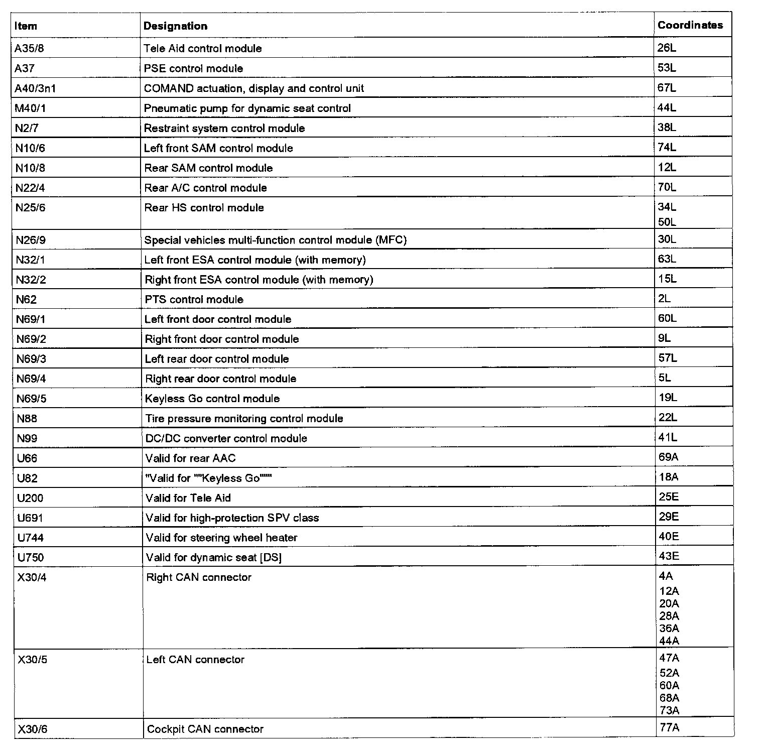 (PART 1) Legend For CAN Bus - Interior Compartment: