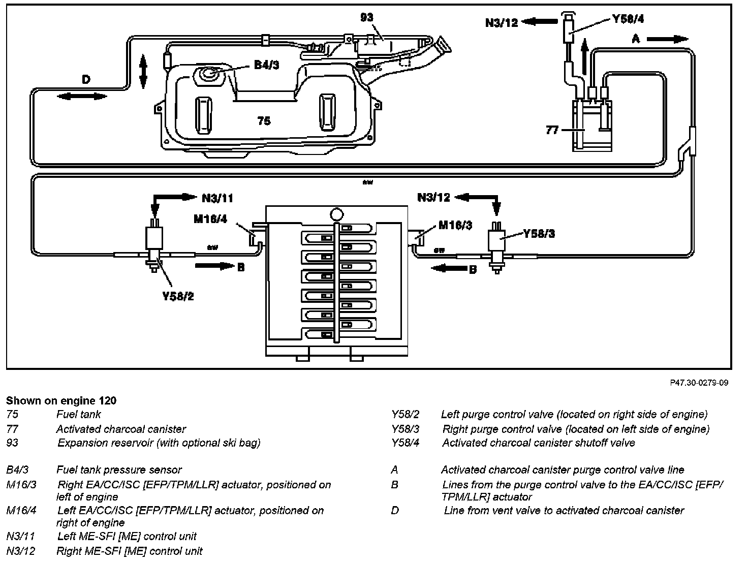 - In engine 120, there are two purge control valves. (Y58/2, Y58/3) These are actuated alternatively.