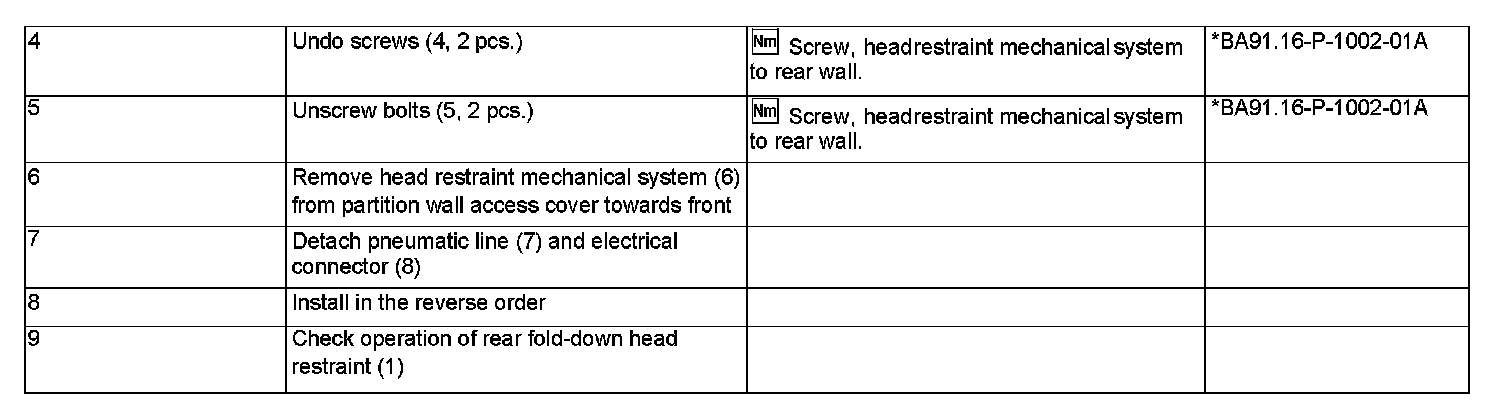 AR91.16-P-1780M Remove/Install Rear Head Restraint Mechanical System