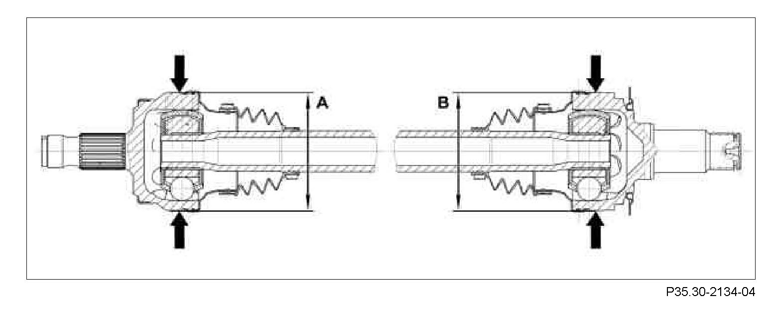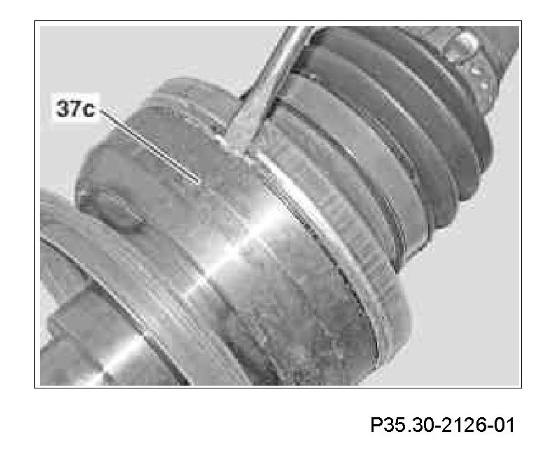 After the boot (37l) is slid on, no grooves on the rear halfshaft should be visible at the end with the smaller diameter, this indicates that the ridge (37l) on the boot is in the first groove.