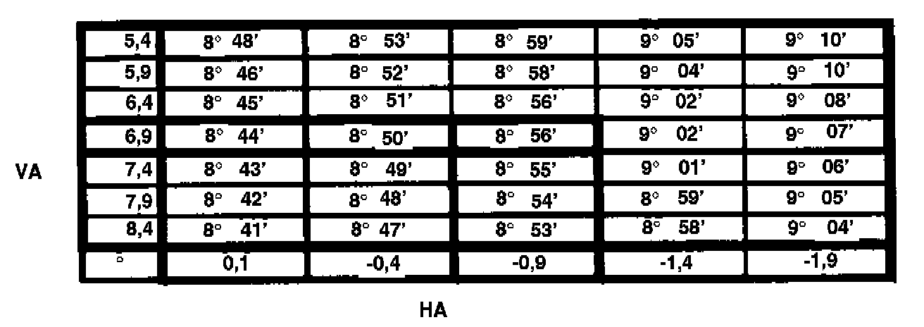 7.9° -0°38' ±20'
