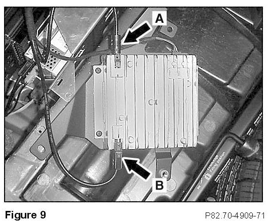 8. Slip the foam sleeve saved in Section B, Step 10 over the satellite radio connector (A, Figure 4) and carefully tuck the connector behind the CD changer/Car Navigation processor bracket assembly.