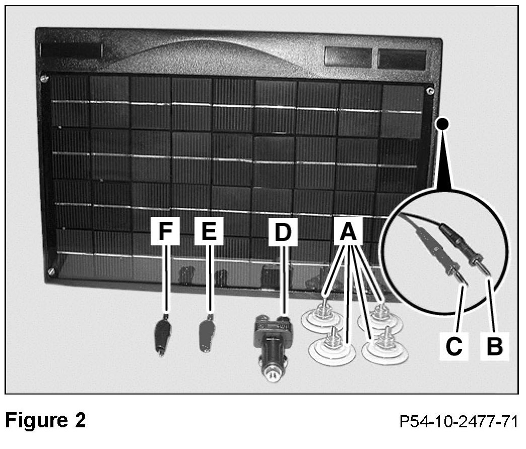 2. Screw the threaded posts of the suction cups (A, Figure 2) into the inserts (Arrows, Figure 1) in the solar panel charging module (A, Figure 1).