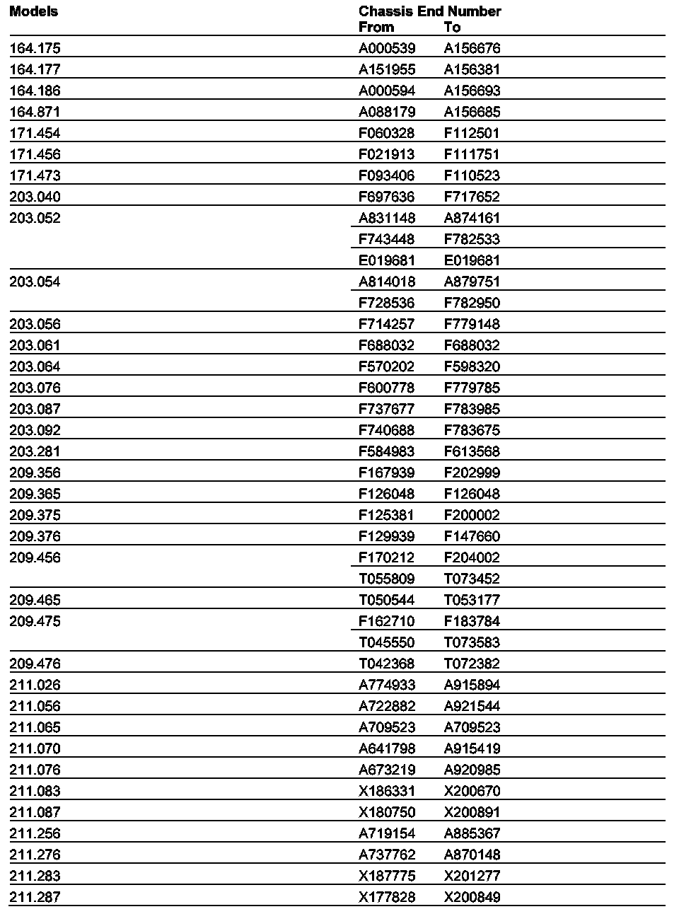 MODELS 164, 171, 203, 209, 211, 215, 219, 220, 221, 230, 251, X164