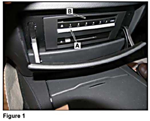 2. Press Button 1 of the DVD changer (A, Figure 1) and insert the Navigation DVD (part number A 221 827 30 59 (v 3.0)) into the changer (B).