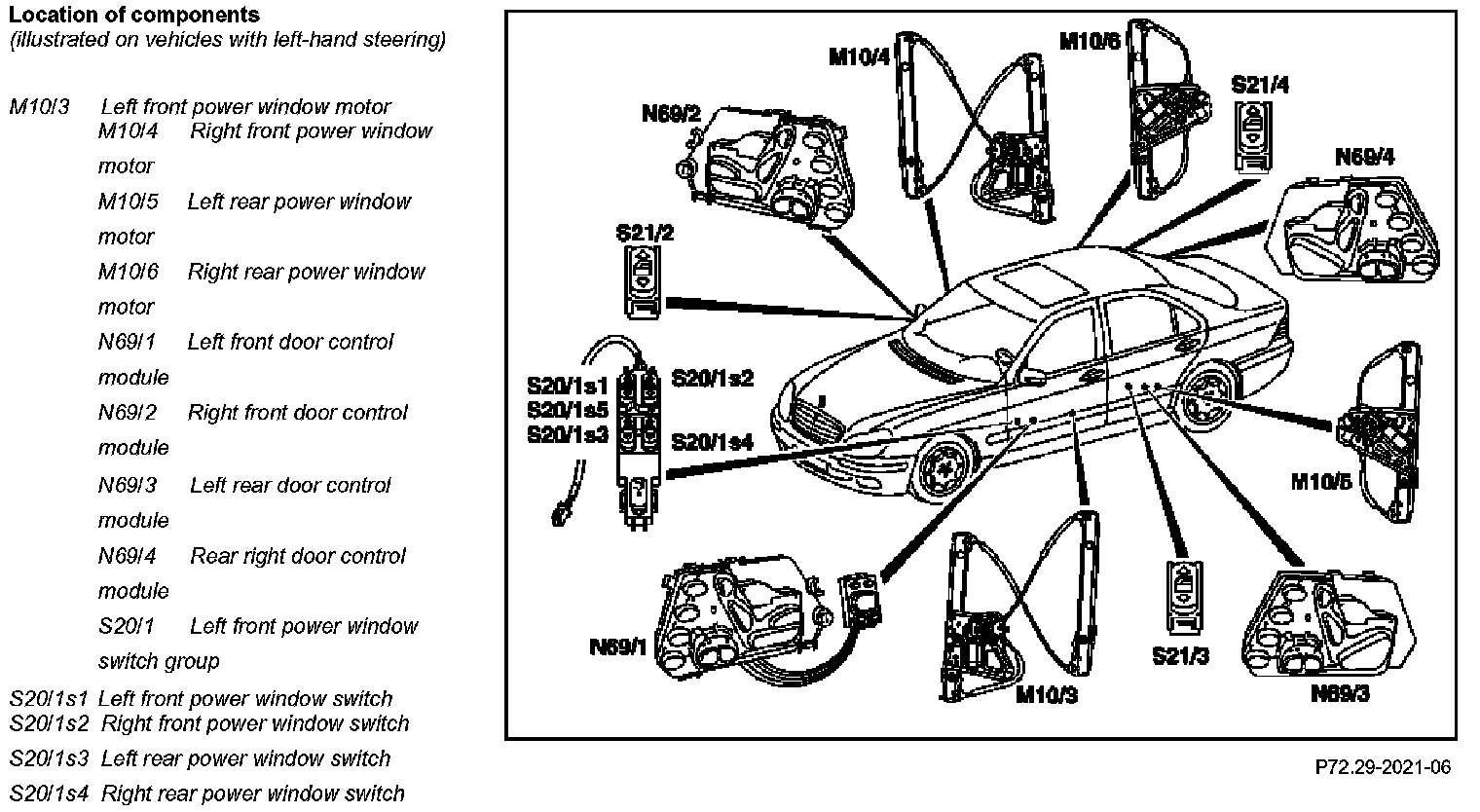 GF72.29-P-0003-01S Power Windows (PW), Location of Components