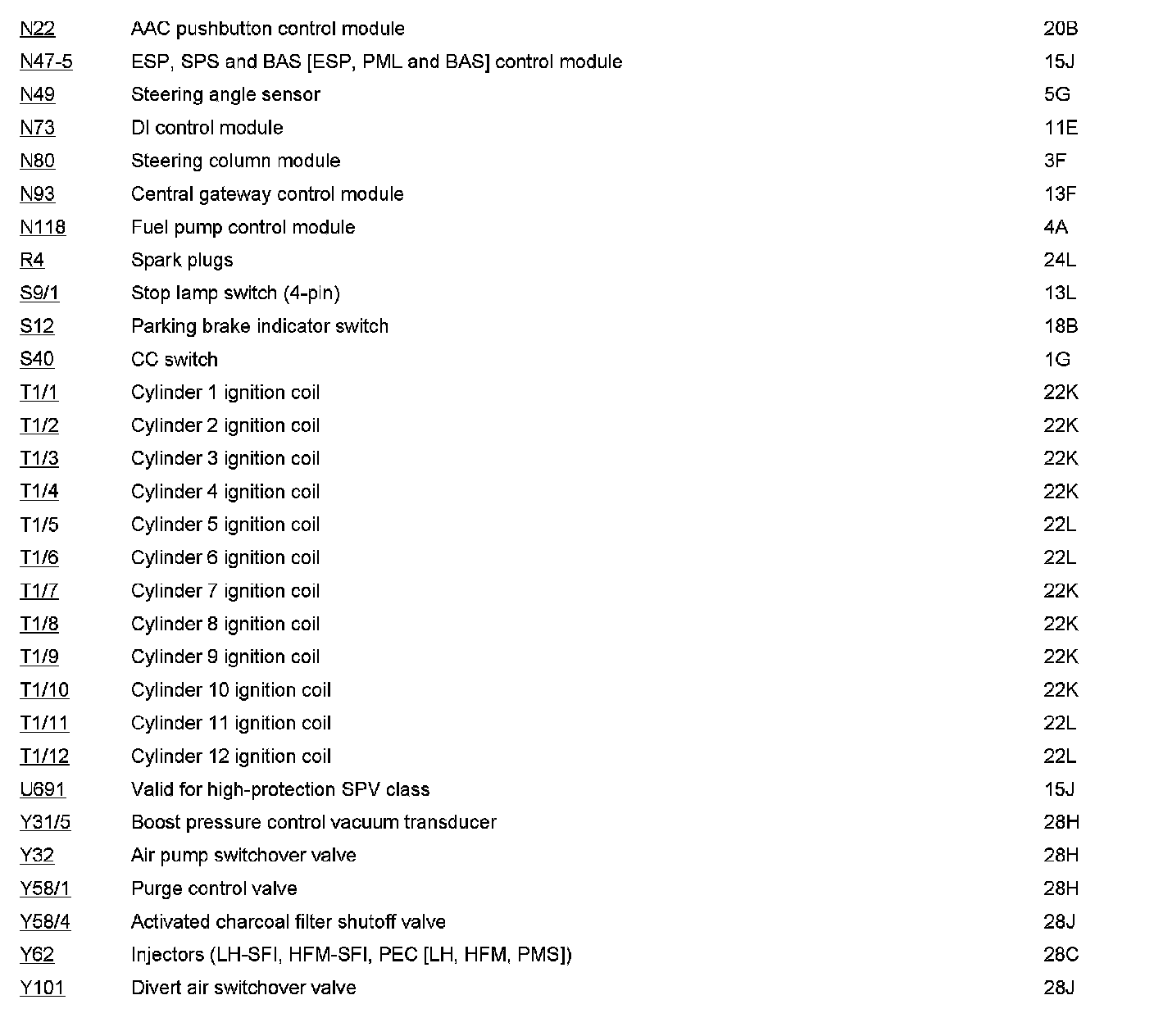 Component Description/Coordinates, N22 To Y101: