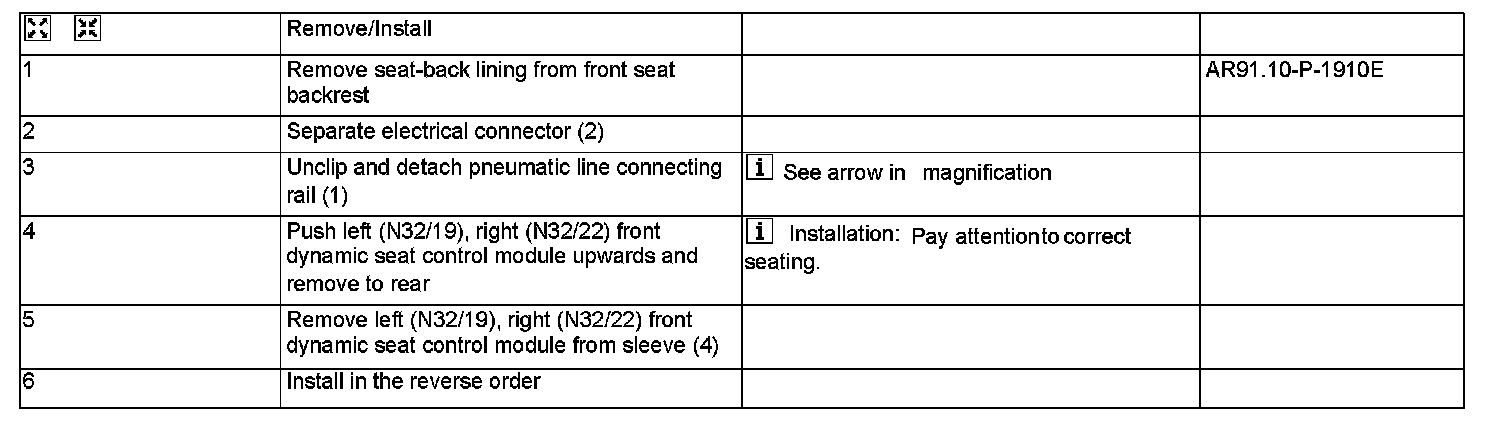 AR91.25-P-1800MB Remove/Install Dynamic Seat Control Module