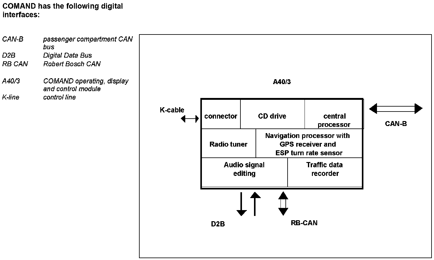 The following are integrated in the COMAND operating, display and control module (A40/3):