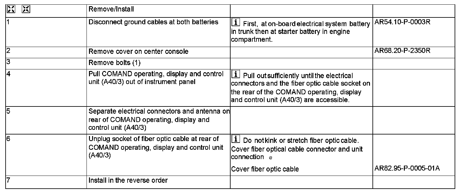 AR82.85-P-7472R Remove/Install Operating, Display and Control Unit