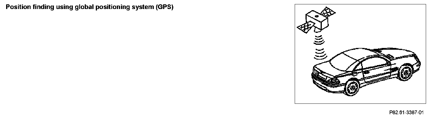 The actual calculation is based on the measurement of the transmission times of the signals transmitted synchronously by the various satellites. Here, an important prerequisite is that the satellite and receiver clocks are synchronized. For this purpose, the receiver has an automatic time correction feature which again is possible with the aid of the satellite signals. When the navigation processor (N41/1) determines that basic position finding (dead reckoning) is less precise than GPS position finding, the currently calculated position is corrected with the aid of the GPS data. In addition, the vehicle's course of travel is determined with the aid of the sequence of the locations calculated with GPS.