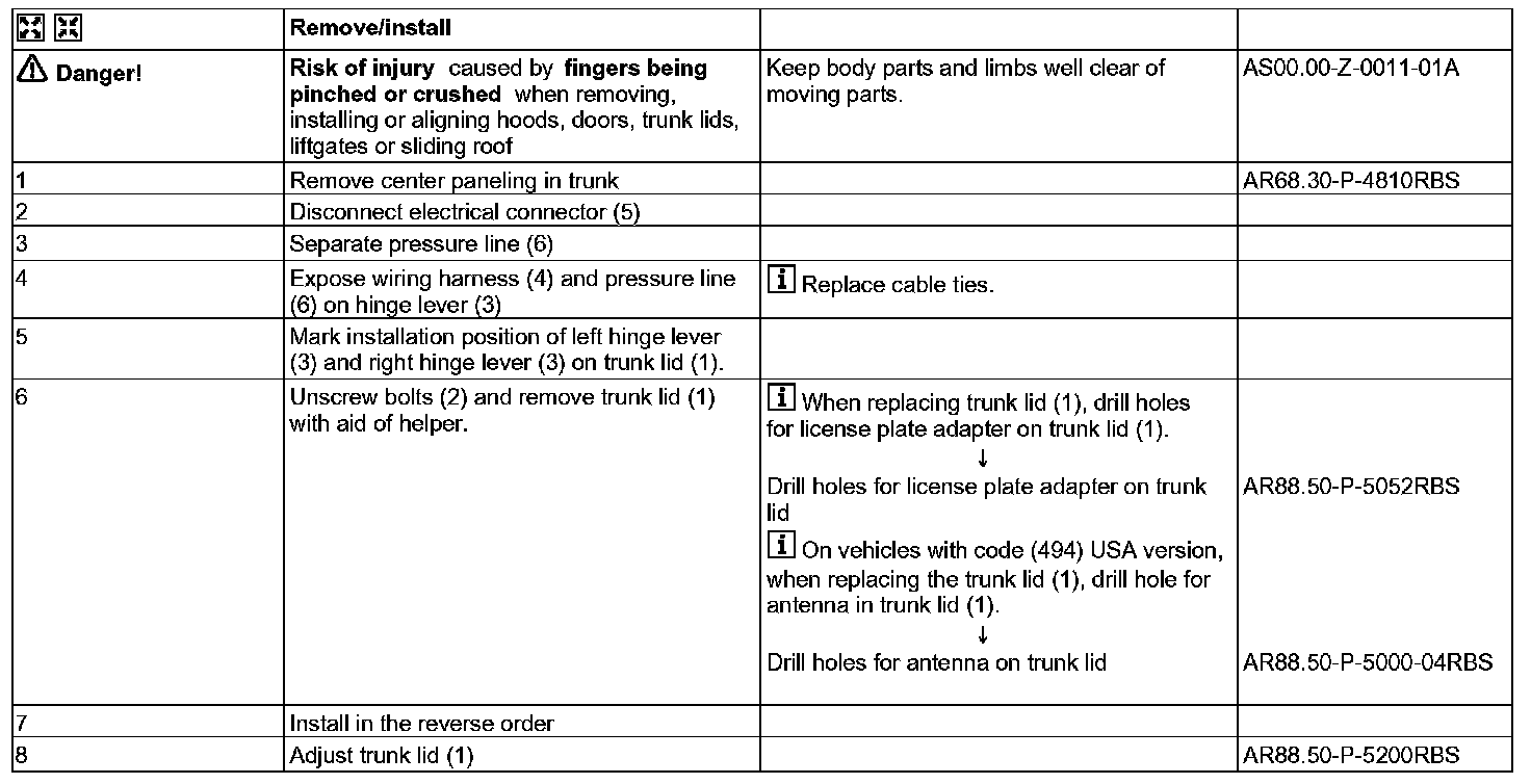 AR88.50-P-5000RBS Remove/Install Trunk Lid