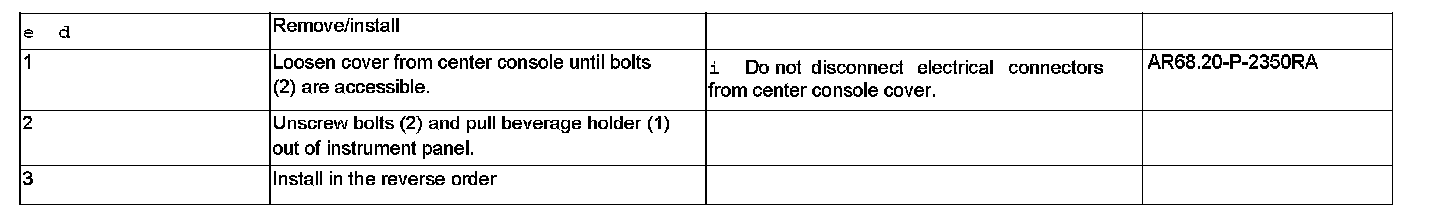 AR68.10-P-1600RA Remove/Install Stowage Compartment or Beverage Holder