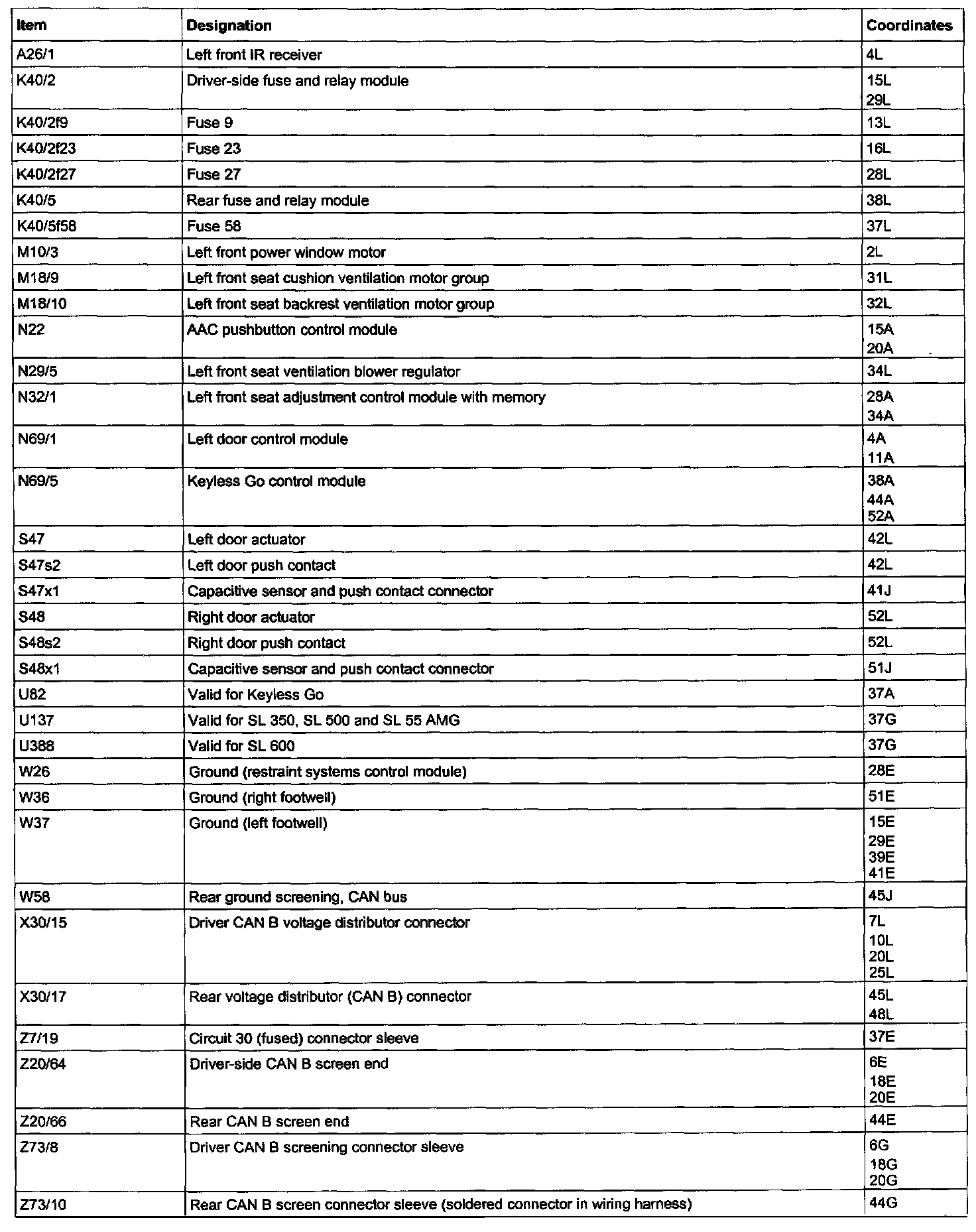 Component Description/Coordinates, A26/1 - Z73/10: