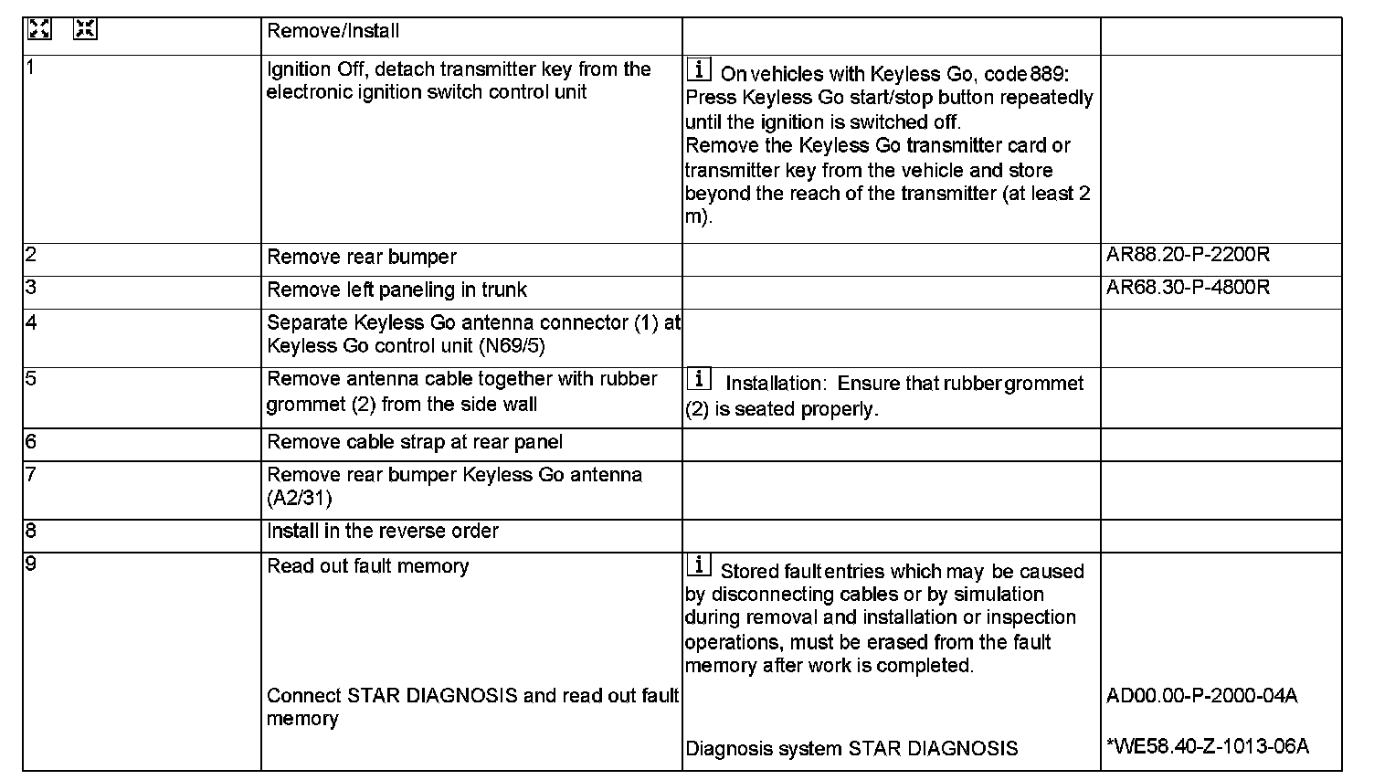 AR82.62-P-8000RB Remove/Install Keyless Go Antenna