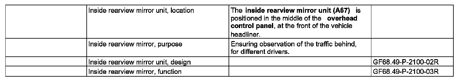 GF68.49-P-2100R Inside Rearview Mirror Unit, Position/Task/Design/Function