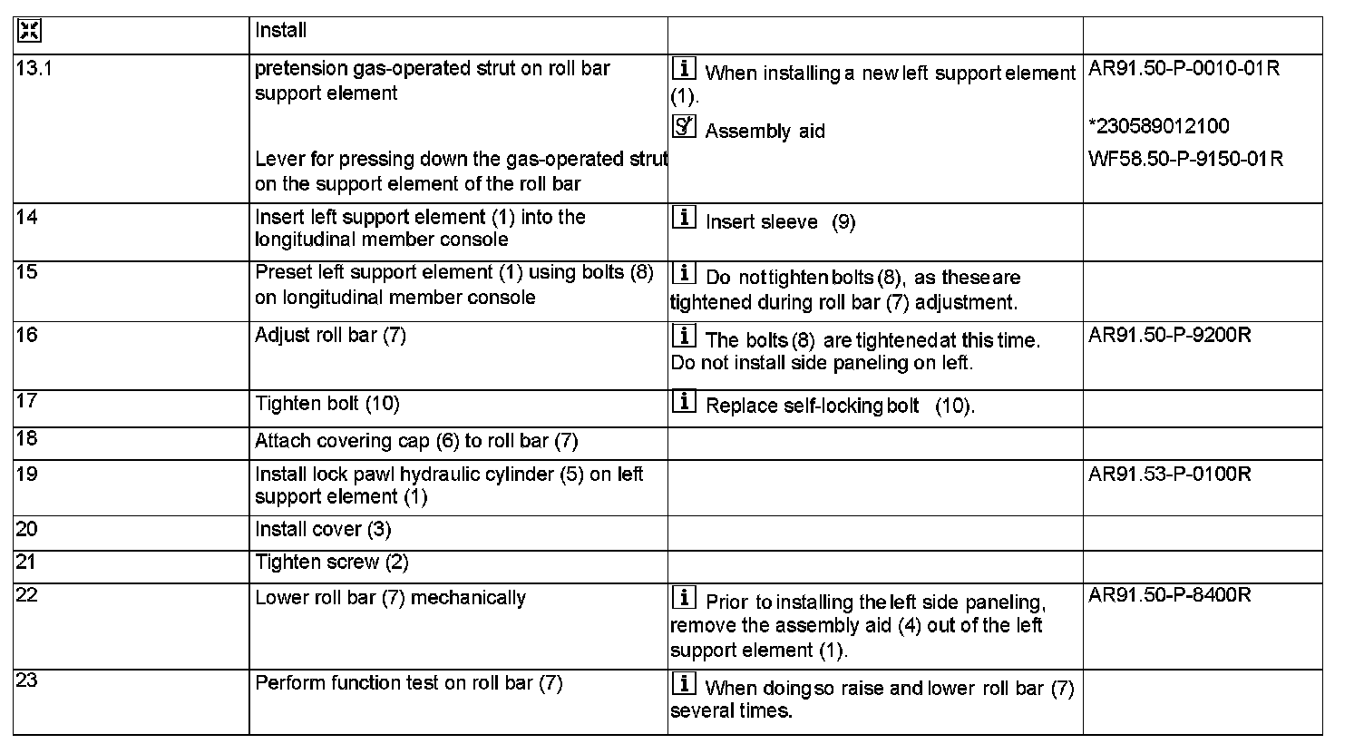 AR91.50-P-0010R Remove/Install Support Element At Left of Roll Bar