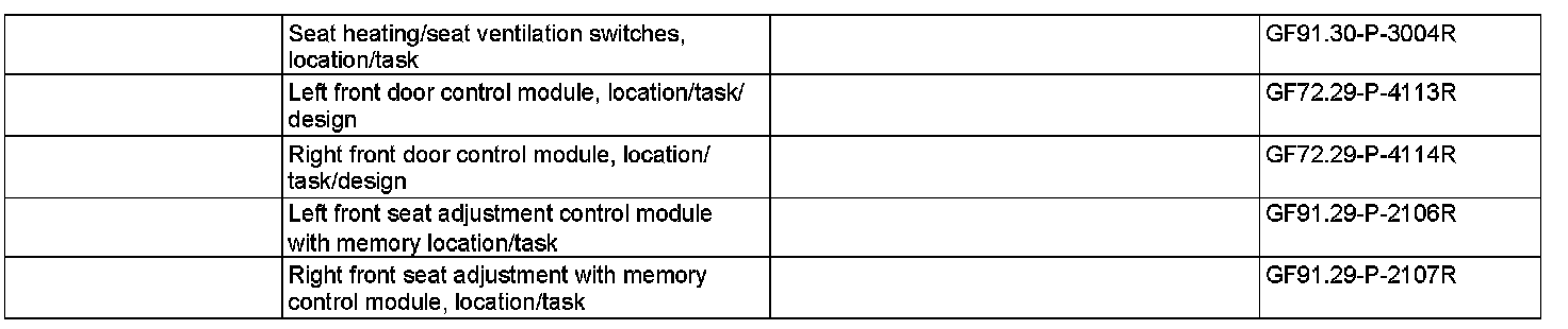 The left front seat adjustment with memory control module (N32/1) and right front seat adjustment with memory control module (N32/2) control the power supply to the heating elements in the seat, depending on the heating stage selected.