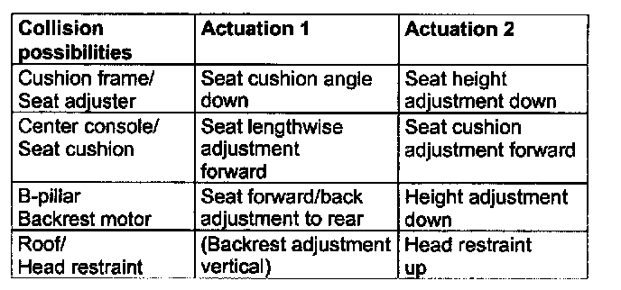 The following collision situations during adjustment of the seat may occur, depending on the position of the seat at that moment: