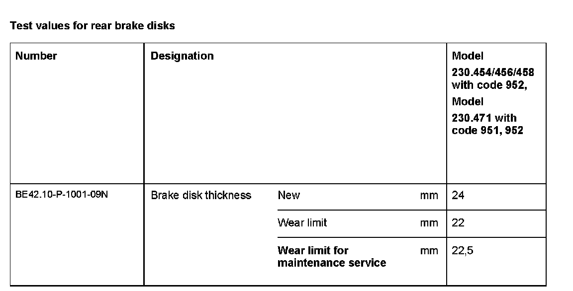 Test Values For Rear Brake Disks:
