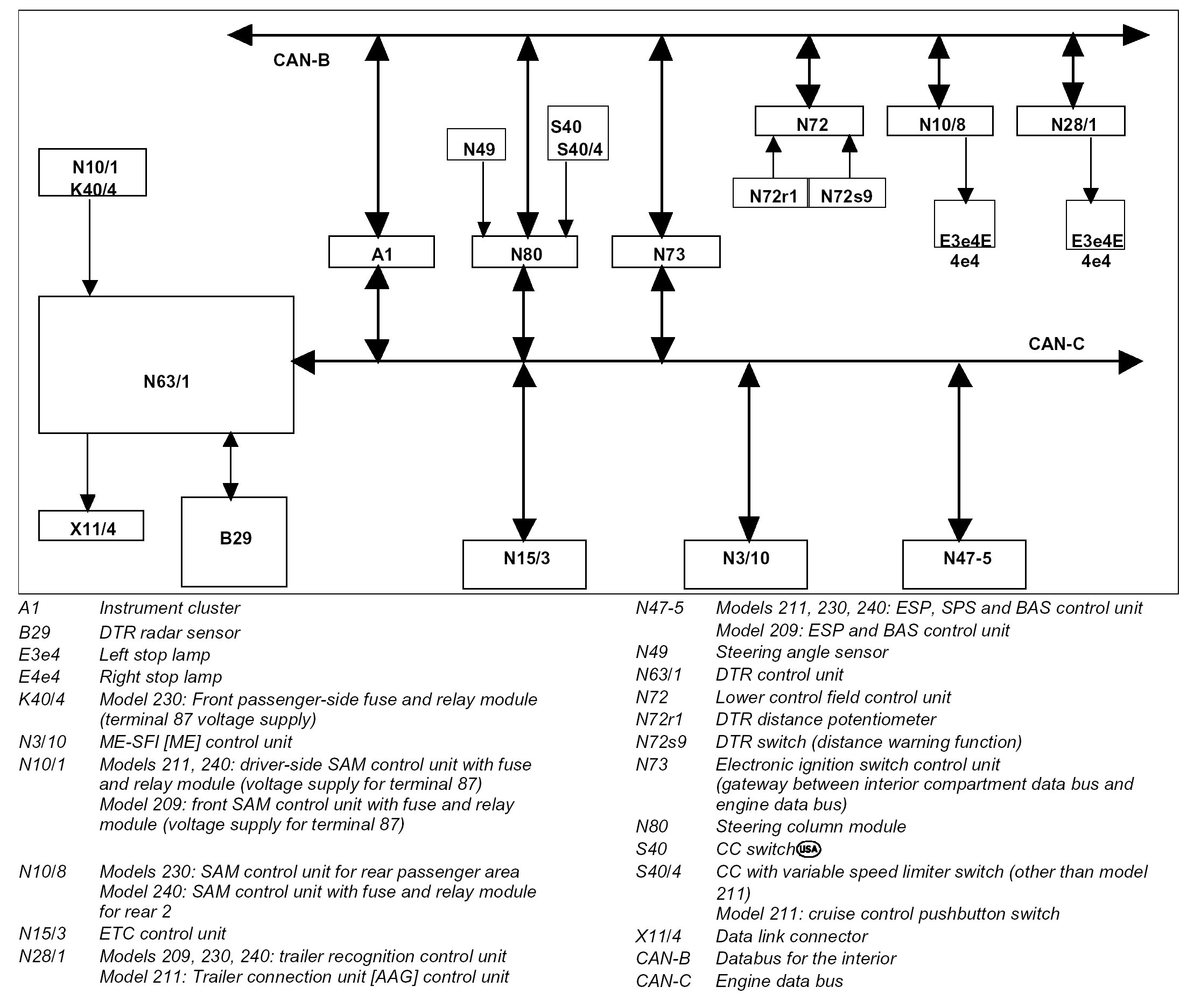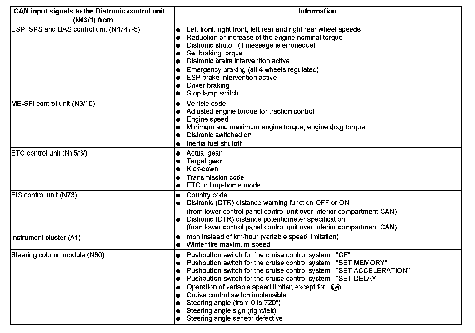 The Distronic control unit receives all the information it requires for its calculations over the CAN data bus.