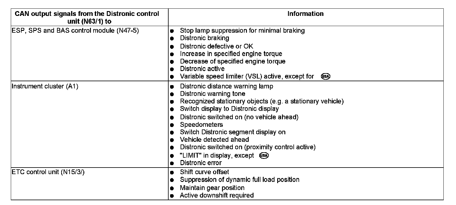 The Distronic uses the engine torque and braking torque interface in the ESP control unit. All requests are first collected in the ESP control unit so that there are no conflicts with engine and brake interventions between the Distronic and ESP systems. The interventions are then executed according to their importance.